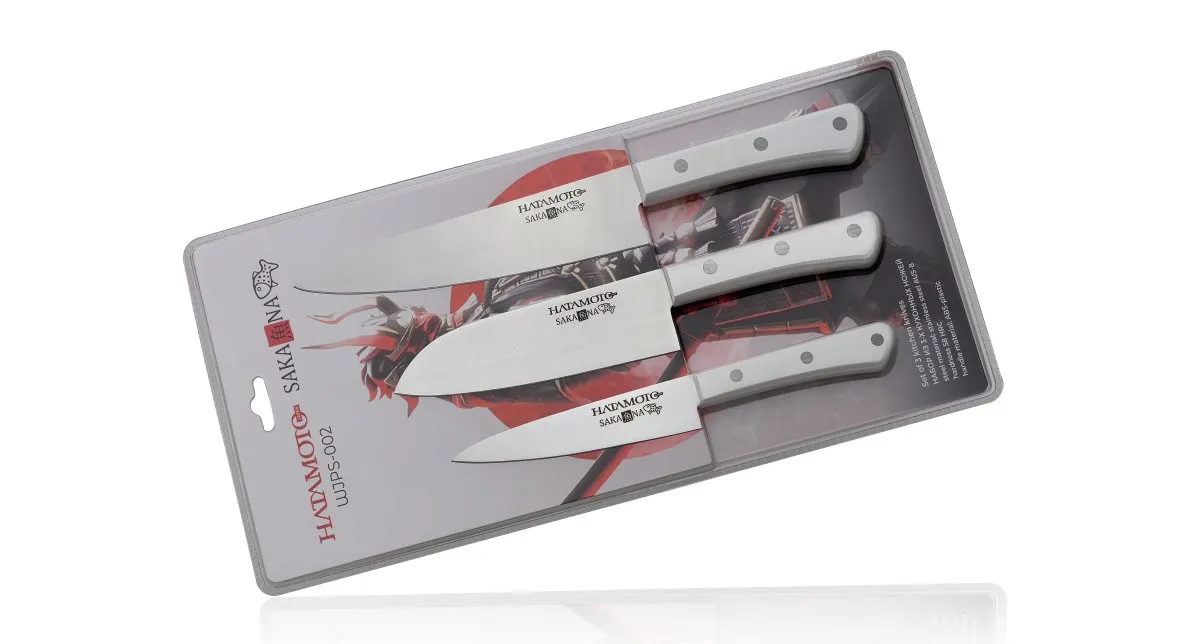 Набор из 3-х Кухонных Ножей Hatamoto (JPS-002), длина лезвия 130 mm, 150 mm, 185 mm заточка #8000