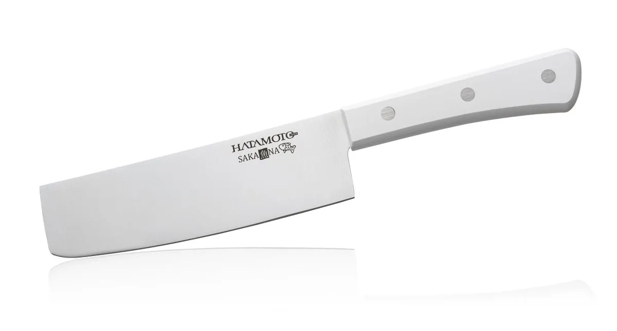 Нож Накири - длина лезвия 165 мм, толщина обуха 1,75 мм, вес 125гр.
