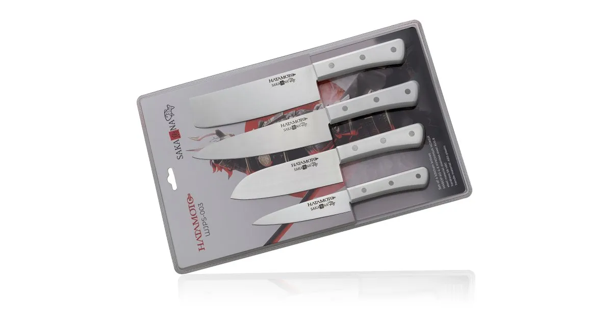 Набор из 4-х Кухонных Ножей Hatamoto (JPS-003), длина лезвия 130 mm, 150 mm, 165 mm. 185 mm заточка #8000