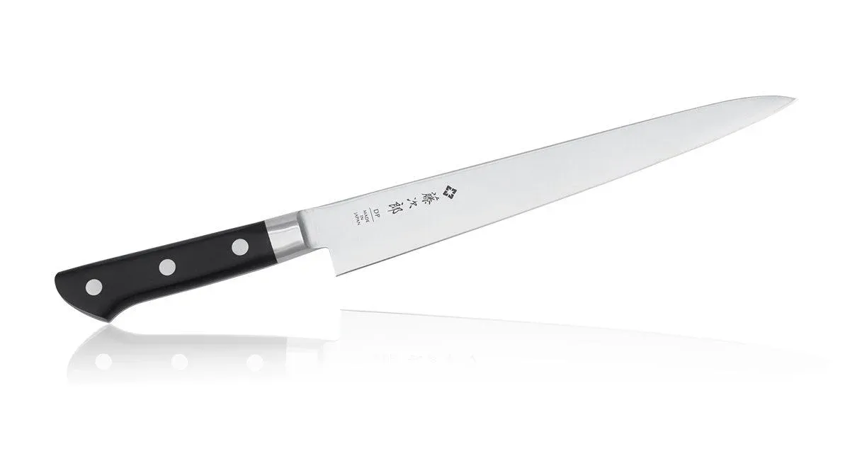 с филейными ножами, но в отличие от них, имеют в конструкции удлиненную обоймицу. Это великолепный кухонный инструмент, созданный из легендарной стали VG-10, которая прославилась на весь мир своей прочностью и непревзойдёнными режущими качествами.