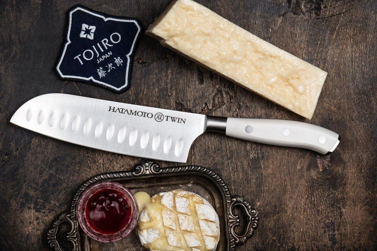 разделочной доске Hatamoto из термопластика, лезвие долго держит заточку и не тупится. Клинок имеет белую лёгкую рукоять из ударопрочного пластика и острое, металлическое лезвие, благодаря чему нож удобно лежит в руке.
