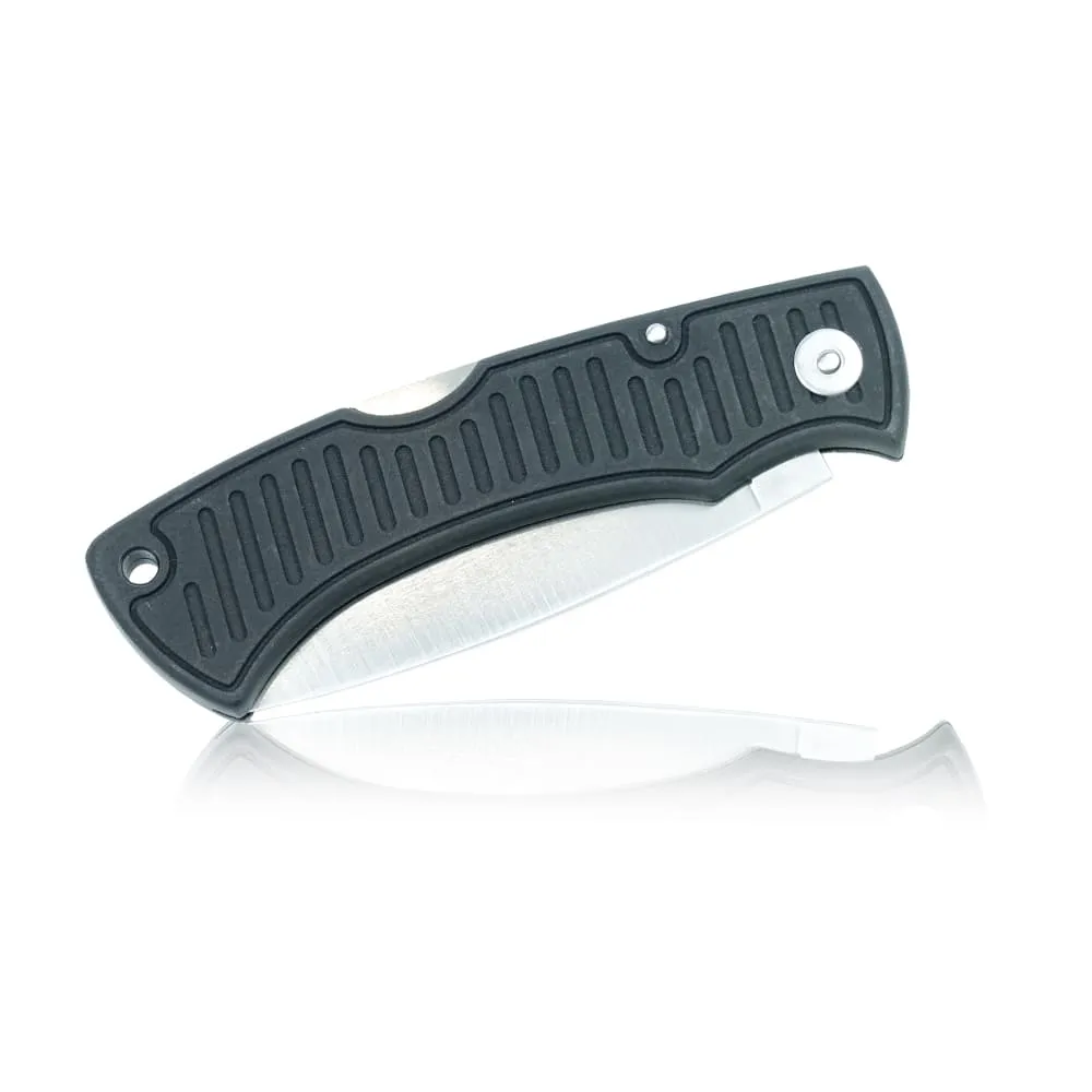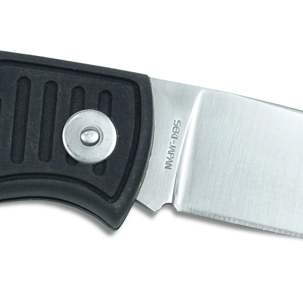 Клинок длиной 87 мм выполнен из стали ATS-34 — премиального для своего времени сплава, известного хорошим удержанием заточки и сбалансированными рабочими характеристиками. Форма drop point делает нож универсальным и удобным для аккуратного, контролируемого реза в повседневных задачах.