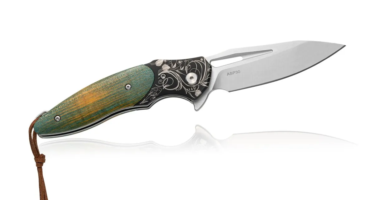 Клинок длиной 85 мм изготовлен из высококачественной порошковой стали ASP30 — современного материала с выдающимися характеристиками: высокая твёрдость, отличное удержание заточки и стойкость к износу. Такая сталь применяется в промышленном инструменте и элитных ножах, обеспечивая невероятную остроту и стабильность в работе.