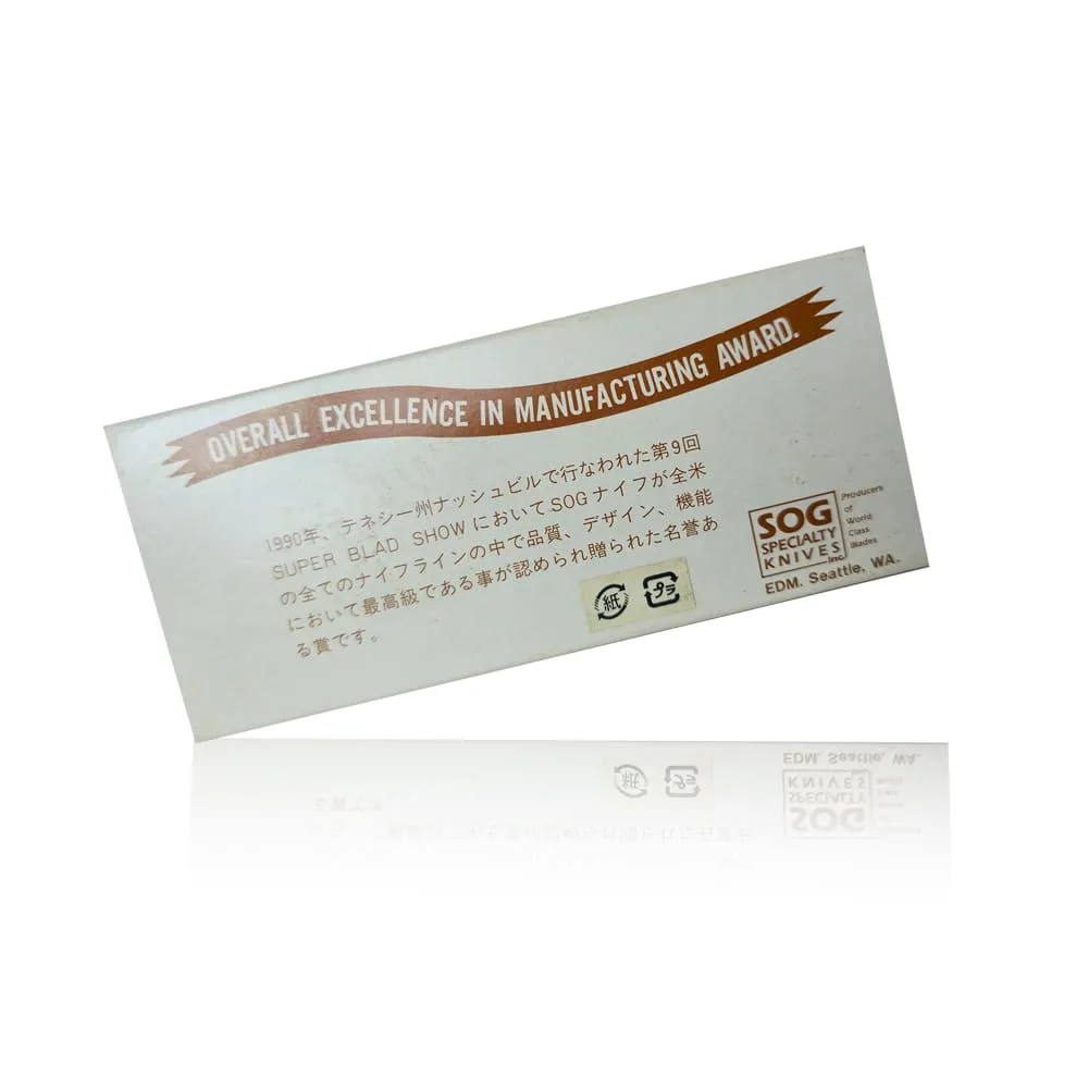 Через тринадцать лет после расформирования элитного подразделения, в 1986 году, была основана компания SOG Specialty Knives, которая продолжила наследие своего предшественника. С тех пор SOG зарекомендовала себя как один из ведущих производителей складных и охотничьих ножей, а также многофункциональных инструментов, которые отвечают самым высоким стандартам качества и надежности.