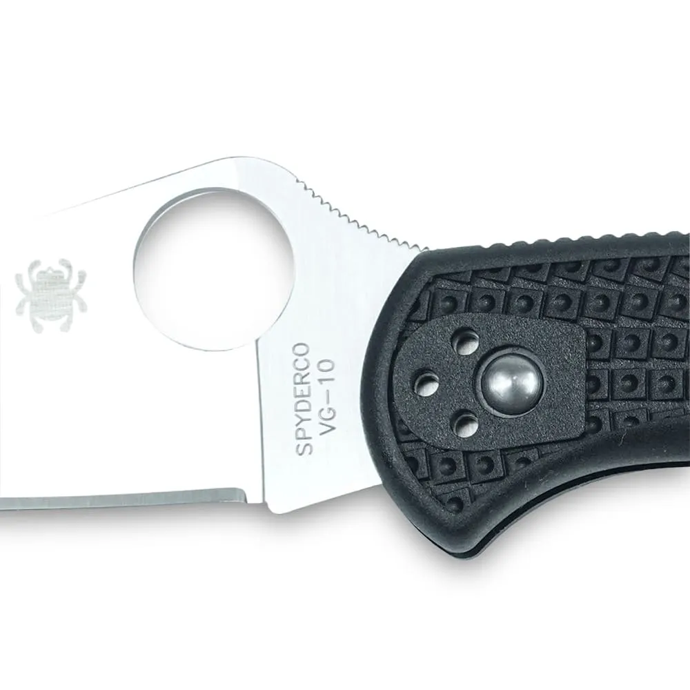 Рукоять из текстурированного FRN с фирменной двунаправленной насечкой Spyderco гарантирует надёжный хват даже во влажных условиях. Классический замок back lock безопасно фиксирует клинок, а фирменное отверстие SpyderHole™ позволяет быстро открывать нож одной рукой. Четырёхпозиционная клипса делает нож одинаково удобным для правшей и левшей.