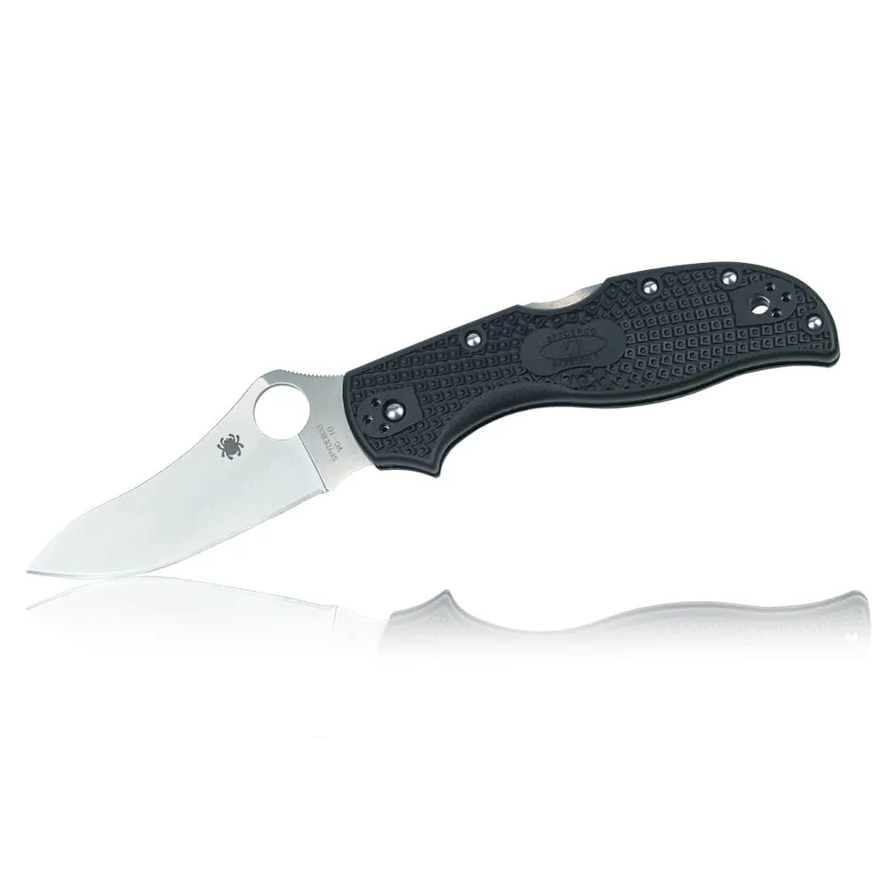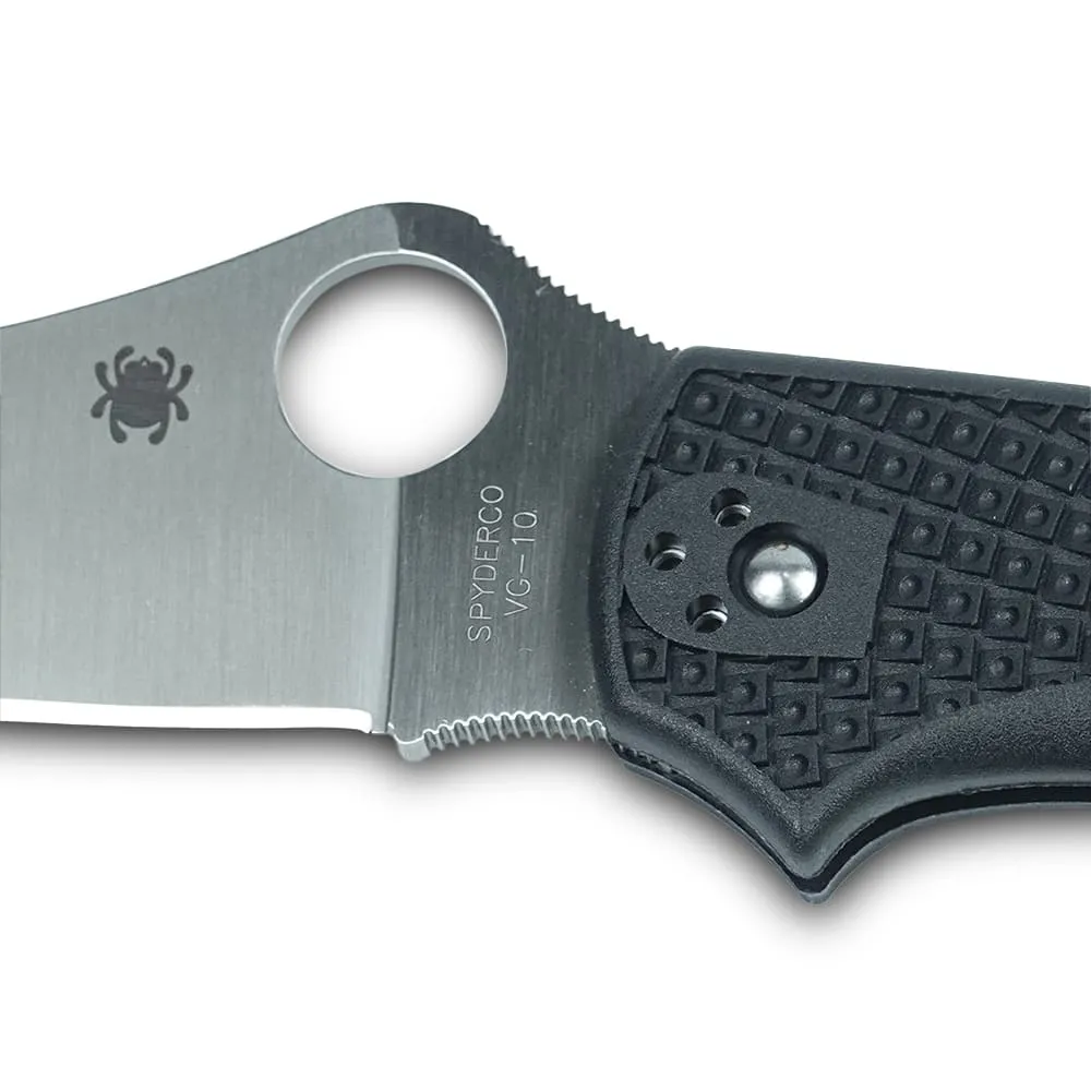 Рукоять из текстурированного FRN обеспечивает уверенный хват даже во влажных условиях, а классический замок back lock надёжно фиксирует клинок в рабочем положении. Фирменное отверстие SpyderHole™ позволяет быстро и удобно открывать нож одной рукой, а четырёхпозиционная клипса подходит как для правшей, так и для левшей.