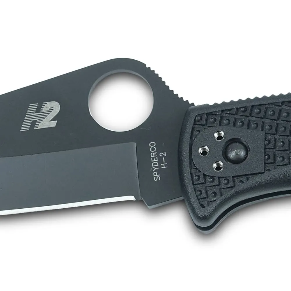 Клинок длиной 96 мм изготовлен из стали H2, которую Spyderco использует в актуальных моделях Salt как ультракоррозионностойкий материал. В версии Black Blade применяется чёрное покрытие TiCN, снижающее блики и добавляющее дополнительную защиту поверхности.